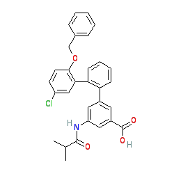 | SMILES | CC(C)C(=O)Nc1cc(C(=O)O)cc(-c2ccccc2-c2cc(Cl)ccc2OCc2ccccc2)c1 |