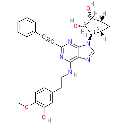 | SMILES | COc1ccc(CCNc2nc(C#Cc3ccccc3)nc3c2ncn3[C@H]2[C@H](O)[C@H](O)[C@@H]3C[C@@H]32)cc1O |
