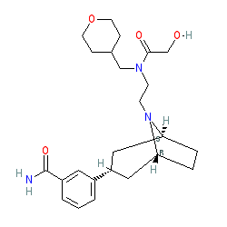 | SMILES | NC(=O)c1cccc([C@@H]2C[C@@H]3CC[C@H](C2)N3CCN(CC2CCOCC2)C(=O)CO)c1 |