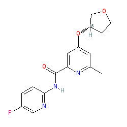 | SMILES | Cc1cc(O[C@H]2CCOC2)cc(C(=O)Nc2ccc(F)cn2)n1 |