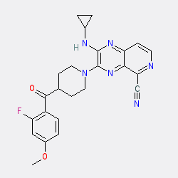 | SMILES | COc1ccc(C(=O)C2CCN(c3nc4c(C#N)nccc4nc3NC3CC3)CC2)c(F)c1 |