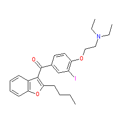 | SMILES | CCCCc1oc2ccccc2c1C(=O)c1ccc(OCCN(CC)CC)c(I)c1 |