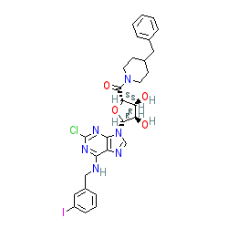 | SMILES | O=C([C@H]1O[C@@H](n2cnc3c(NCc4cccc(I)c4)nc(Cl)nc32)[C@H](O)[C@@H]1O)N1CCC(Cc2ccccc2)CC1 |