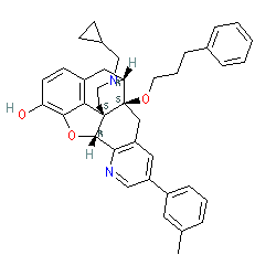 | SMILES | Cc1cccc(-c2cnc3c(c2)C[C@@]2(OCCCc4ccccc4)[C@H]4Cc5ccc(O)c6c5[C@@]2(CCN4CC2CC2)[C@H]3O6)c1 |