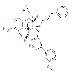 | SMILES | COc1cc(-c2cnc3c(c2)C[C@@]2(OCCCc4ccccc4)[C@H]4Cc5ccc(O)c6c5[C@@]2(CCN4CC2CC2)[C@H]3O6)ccn1 |