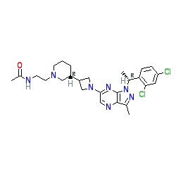 | SMILES | CC(=O)NCCN1CCC[C@H](C2CN(c3cnc4c(C)nn([C@H](C)c5ccc(Cl)cc5Cl)c4n3)C2)C1 |