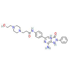 | SMILES | Nc1nc(-c2ccc(NC(=O)CCN3CCN(CCO)CC3)cc2)cn2c(=O)n(-c3ccccc3)nc12 |