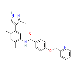 | SMILES | Cc1cc(C)c(-c2c[nH]nc2C)cc1NC(=O)c1ccc(OCc2ccccn2)cc1 |
