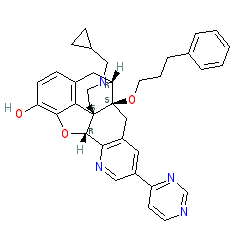 | SMILES | Oc1ccc2c3c1O[C@H]1c4ncc(-c5ccncn5)cc4C[C@@]4(OCCCc5ccccc5)[C@@H](C2)N(CC2CC2)CC[C@]314 |