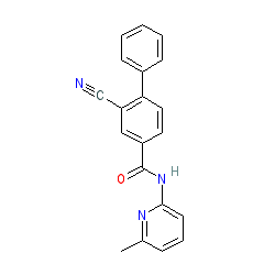 | SMILES | Cc1cccc(NC(=O)c2ccc(-c3ccccc3)c(C#N)c2)n1 |