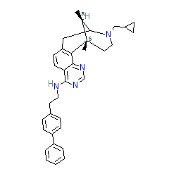 | SMILES | C[C@H]1C2Cc3ccc4c(NCCc5ccc(-c6ccccc6)cc5)ncnc4c3[C@@]1(C)CCN2CC1CC1 |