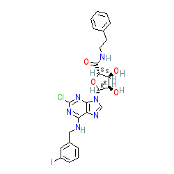 | SMILES | O=C(NCCc1ccccc1)[C@H]1O[C@@H](n2cnc3c(NCc4cccc(I)c4)nc(Cl)nc32)[C@H](O)[C@@H]1O |