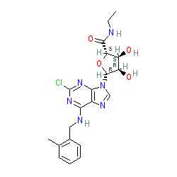 | SMILES | CCNC(=O)[C@H]1O[C@@H](n2cnc3c(NCc4ccccc4C)nc(Cl)nc32)[C@H](O)[C@@H]1O |