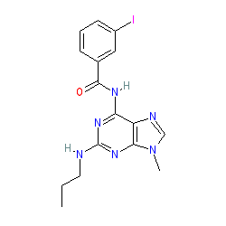 | SMILES | CCCNc1nc(NC(=O)c2cccc(I)c2)c2ncn(C)c2n1 |