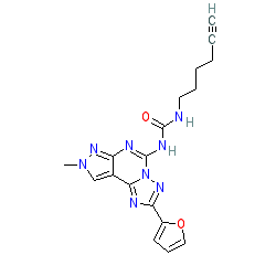 | SMILES | C#CCCCCNC(=O)Nc1nc2nn(C)cc2c2nc(-c3ccco3)nn12 |