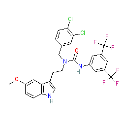 | SMILES | COc1ccc2c(c1)c(CCN(C(=O)Nc1cc(cc(c1)C(F)(F)F)C(F)(F)F)Cc1ccc(c(c1)Cl)Cl)c[nH]2 |
