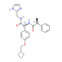 | SMILES | C[C@H](C(=O)N[C@@H](C(=O)NCc1ncc[nH]1)c1ccc(OCC2CCC2)cc1)c1ccccc1 |