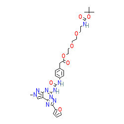 | SMILES | Cn1cc2c(nc(NC(=O)Nc3ccc(CC(=O)OCCOCCOCCNC(=O)OC(C)(C)C)cc3)n3nc(-c4ccco4)nc23)n1 |