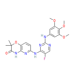 | SMILES | COc1cc(Nc2ncc(F)c(Nc3ccc4c(n3)NC(=O)C(C)(C)O4)n2)cc(OC)c1OC |