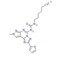 | SMILES | C#CCCCCCNC(=O)Nc1nc2nn(C)cc2c2nc(-c3ccco3)nn12 |