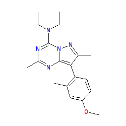 | SMILES | CCN(CC)c1nc(C)nc2c(-c3ccc(OC)cc3C)c(C)nn12 |