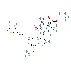 | SMILES | CCOC(=O)[C@@]12C[C@@H]1[C@@H](n1cnc3c(NC)nc(C#Cc4ccc(F)s4)nc31)[C@H](O)[C@@H]2O |