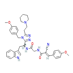 | SMILES | COc1ccc(/C=C(\C#N)C(=O)NCC(=O)N[C@H](Cc2c[nH]c3ccccc23)c2nnc(CCN3CCCCC3)n2Cc2ccc(OC)cc2)cc1 |