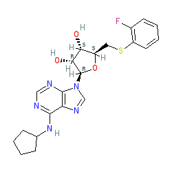 | SMILES | O[C@@H]1[C@@H](CSc2ccccc2F)O[C@@H](n2cnc3c(NC4CCCC4)ncnc32)[C@@H]1O |