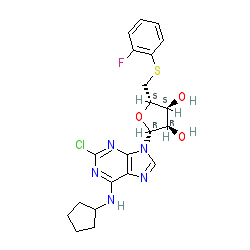 | SMILES | O[C@@H]1[C@@H](CSc2ccccc2F)O[C@@H](n2cnc3c(NC4CCCC4)nc(Cl)nc32)[C@@H]1O |