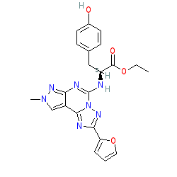 | SMILES | CCOC(=O)[C@H](Cc1ccc(O)cc1)Nc1nc2nn(C)cc2c2nc(-c3ccco3)nn12 |