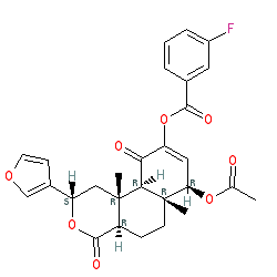 | SMILES | CC(=O)O[C@@H]1C=C(OC(=O)c2cccc(F)c2)C(=O)[C@H]2[C@@]1(C)CC[C@H]1C(=O)O[C@H](c3ccoc3)C[C@@]12C |