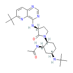 | SMILES | CC(=O)N[C@@H]1C[C@H](NC(C)(C)C)CC[C@@H]1N1CC[C@H](Nc2ncnc3ccc(C(C)(C)C)nc23)C1=O |
