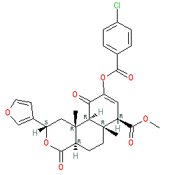 | SMILES | COC(=O)[C@@H]1C=C(OC(=O)c2ccc(Cl)cc2)C(=O)[C@H]2[C@@]1(C)CC[C@H]1C(=O)O[C@H](c3ccoc3)C[C@@]12C |
