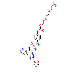 | SMILES | Cn1cc2c(nc(NC(=O)Nc3ccc(CC(=O)OCCOCCOCCN)cc3)n3nc(-c4ccco4)nc23)n1 |