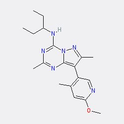 | SMILES | CCC(CC)Nc1nc(C)nc2c(-c3cnc(OC)cc3C)c(C)nn12 |