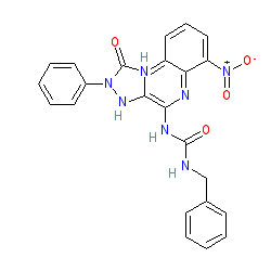 | SMILES | O=C(NCc1ccccc1)Nc1nc2c([N+](=O)[O-])cccc2n2c(=O)n(-c3ccccc3)nc12 |