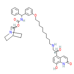 | SMILES | O=C(NC(c1ccccc1)c1cccc(OCCCCCCCCCNC[C@H](O)c2ccc(O)c3[nH]c(=O)ccc23)c1)O[C@H]1CN2CCC1CC2 |