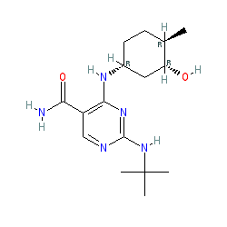 | SMILES | C[C@@H]1CC[C@@H](Nc2nc(NC(C)(C)C)ncc2C(N)=O)C[C@H]1O |