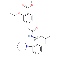 | SMILES | CCOc1cc(CC(=O)N[C@@H](CC(C)C)c2ccccc2N2CCCCC2)ccc1C(=O)O |