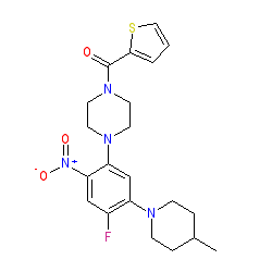 | SMILES | CC1CCN(c2cc(N3CCN(C(=O)c4cccs4)CC3)c([N+](=O)[O-])cc2F)CC1 |