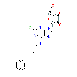| SMILES | OC[C@H]1O[C@@H](n2cnc3c(NCCCCc4ccccc4)nc(Cl)nc32)[C@H](O)[C@@H]1O |