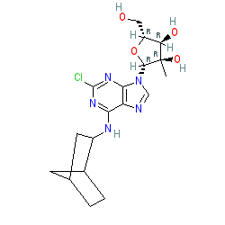 | SMILES | C[C@@]1(O)[C@H](O)[C@@H](CO)O[C@H]1n1cnc2c(NC3CC4CCC3C4)nc(Cl)nc21 |