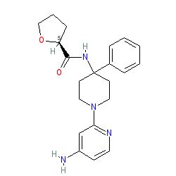 | SMILES | Nc1ccnc(N2CCC(NC(=O)[C@@H]3CCCO3)(c3ccccc3)CC2)c1 |