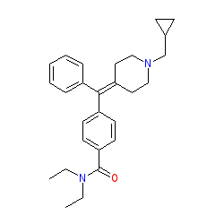 | SMILES | CCN(CC)C(=O)c1ccc(C(=C2CCN(CC3CC3)CC2)c2ccccc2)cc1 |
