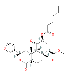 | SMILES | CCCCCC(=O)O[C@H]1C[C@@H](C(=O)OC)[C@]2(C)CC[C@H]3C(=O)O[C@H](c4ccoc4)C[C@]3(C)[C@H]2C1=O |