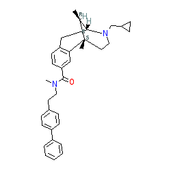 | SMILES | C[C@H]1[C@H]2Cc3ccc(C(=O)N(C)CCc4ccc(-c5ccccc5)cc4)cc3[C@@]1(C)CCN2CC1CC1 |