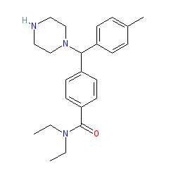 | SMILES | CCN(CC)C(=O)c1ccc(C(c2ccc(C)cc2)N2CCNCC2)cc1 |