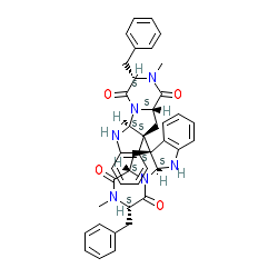 | SMILES | CN1C(=O)[C@@H]2C[C@@]3([C@@]45C[C@H]6C(=O)N(C)[C@@H](Cc7ccccc7)C(=O)N6[C@@H]4Nc4ccccc45)c4ccccc4N[C@H]3N2C(=O)[C@@H]1Cc1ccccc1 |