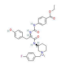 | SMILES | CCOC(=O)c1ccc(NC(=O)N[C@@H](Cc2ccc(O)cc2)C(=O)N[C@H]2CCC[N+](C)(Cc3ccc(F)cc3)C2)cc1 |