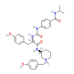 | SMILES | CC(C)NC(=O)c1ccc(NC(=O)N[C@@H](Cc2ccc(O)cc2)C(=O)N[C@H]2CCC[N+](C)(Cc3ccc(O)cc3)C2)cc1 |